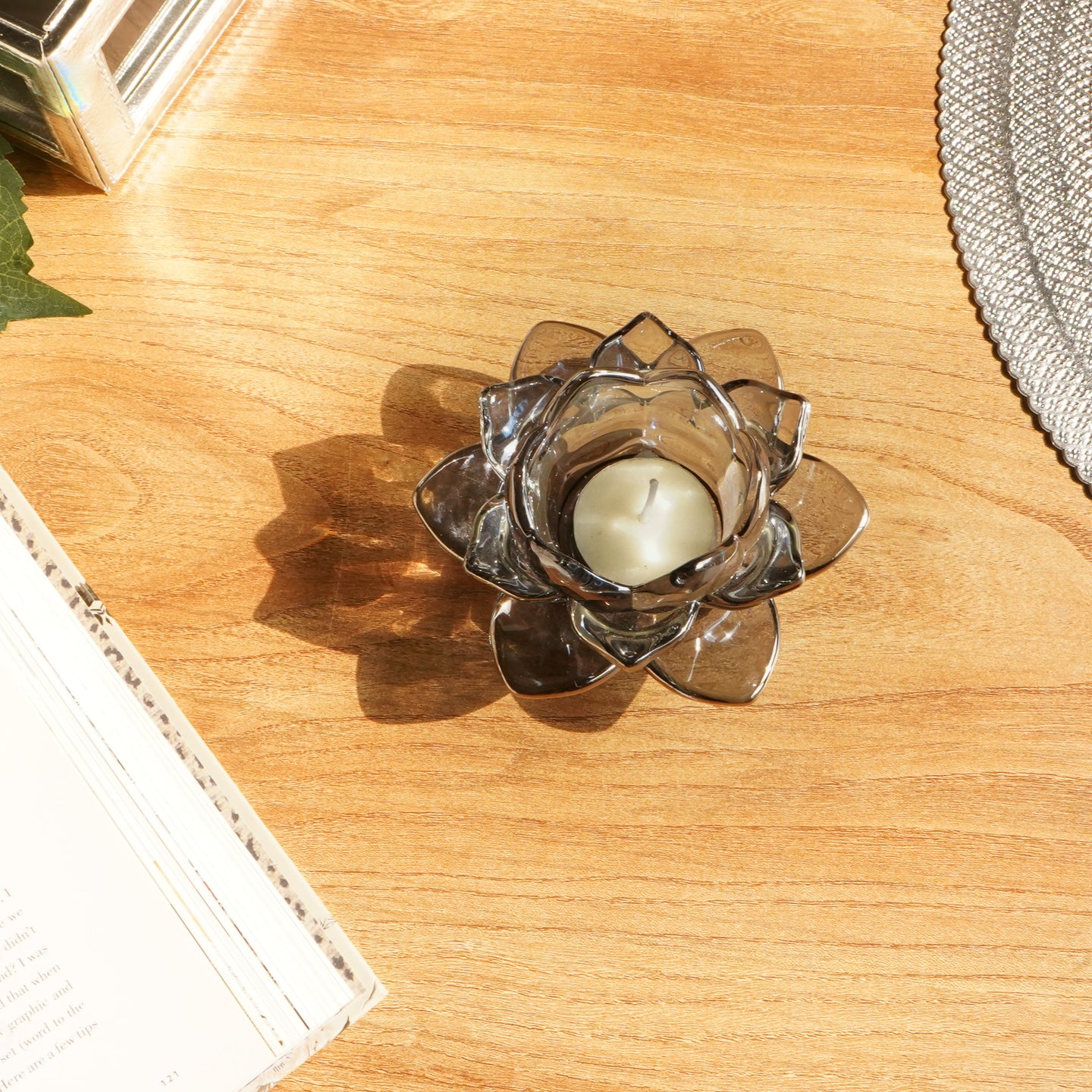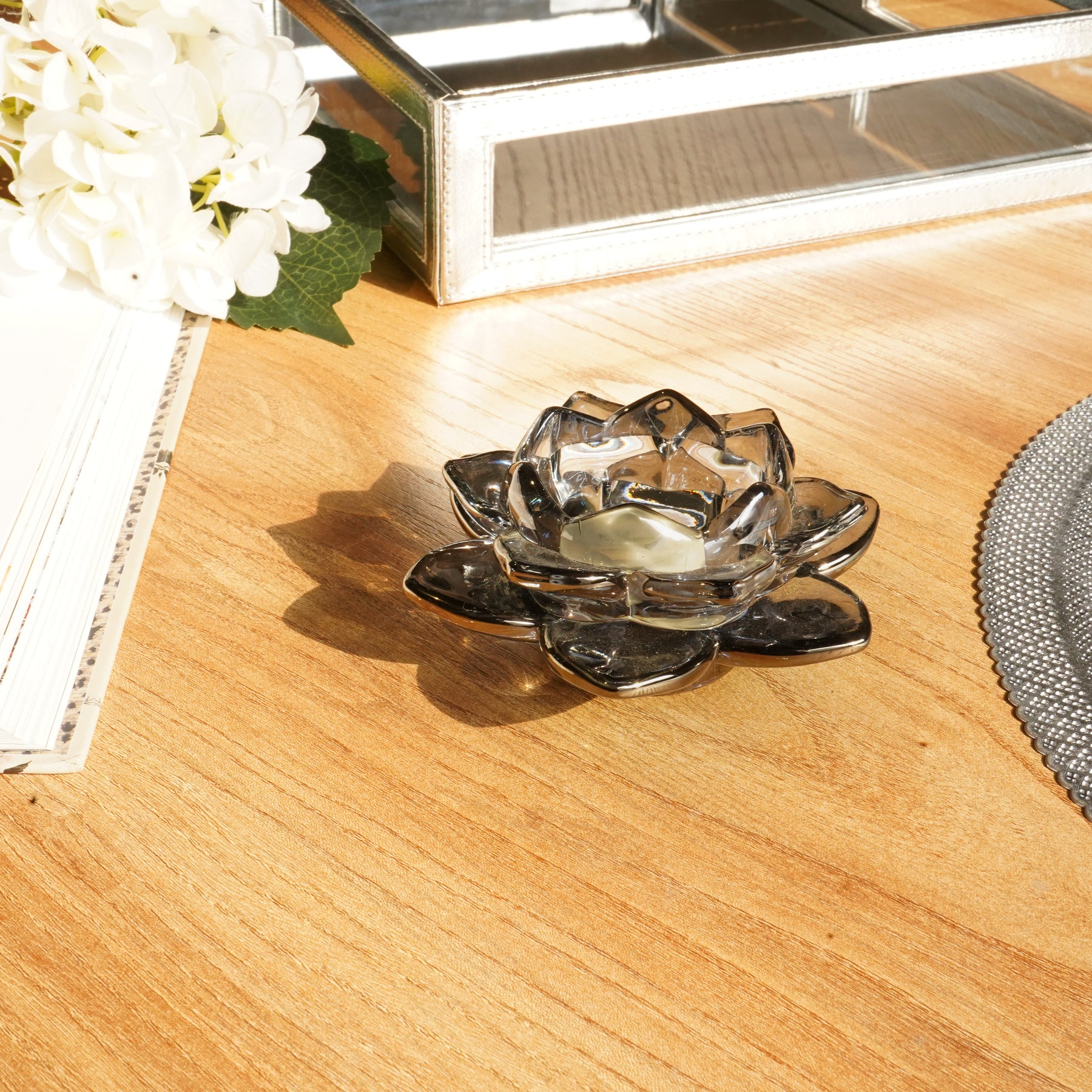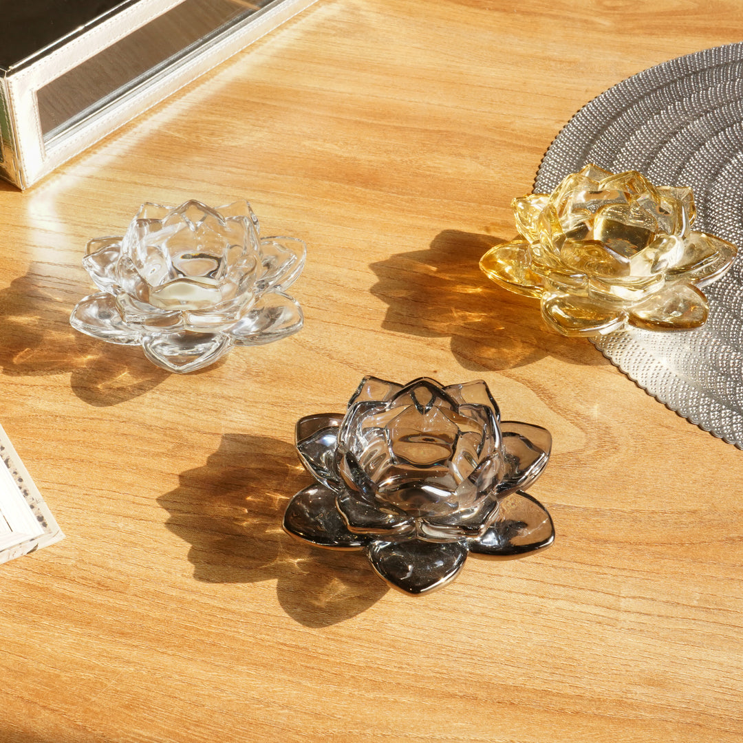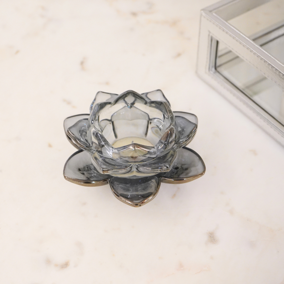 Grey Blue Lotus Glass Tealight Candle Holder