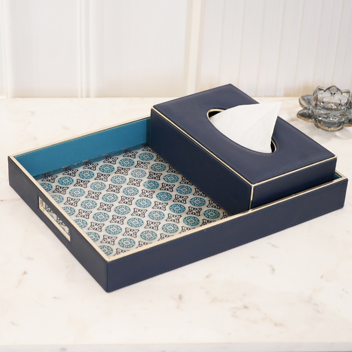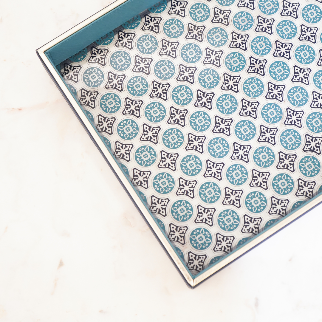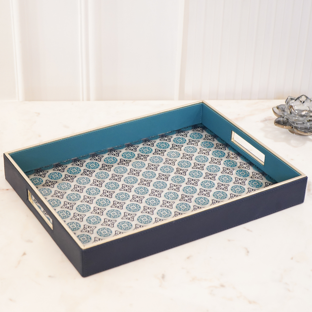 Vegan Leather Serving Tray w/ Contrast Blue Design