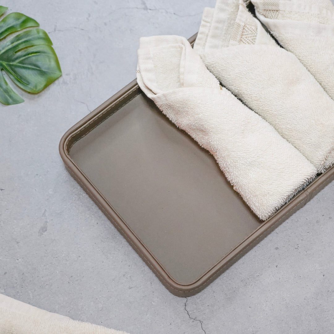 Introducing our all new Epifania Oblong Tray. This tray is not only a stylish accessory but also environmentally conscious with its Cruelty-Free Faux Leather construction. The Chic Oblong Tray boasts a Rich Color Palette, including Brown, Black, Orange, and Grey, allowing you to choose the perfect hue to complement your space.