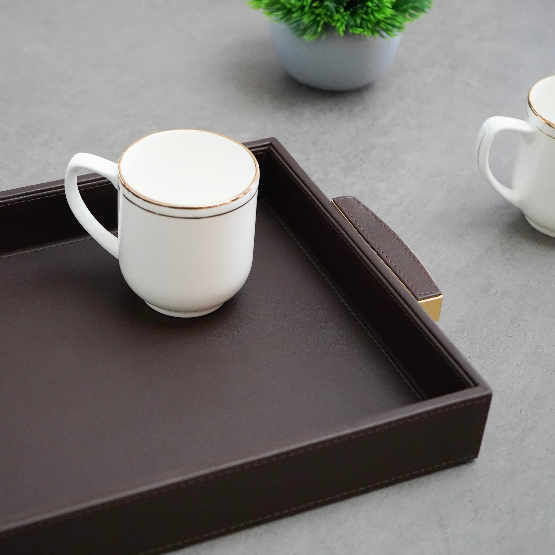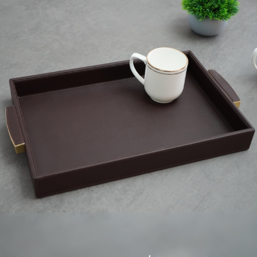 Elevate your home decor with the Estrella Serving Tray, available in black and brown colours. Make an ethical statement with the Cruelty-Free Faux Leather construction. Crafted without harming animals, this tray embodies responsible luxury, ensuring a guilt-free addition to your home.