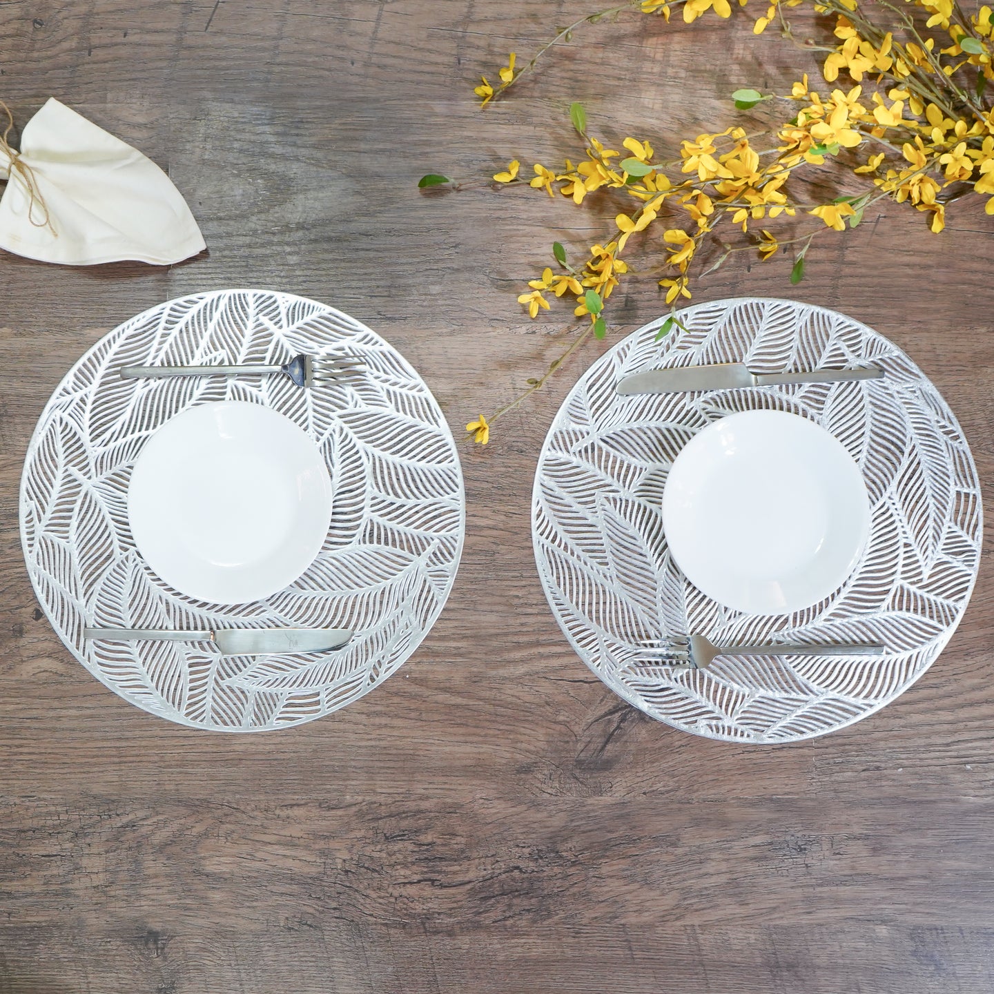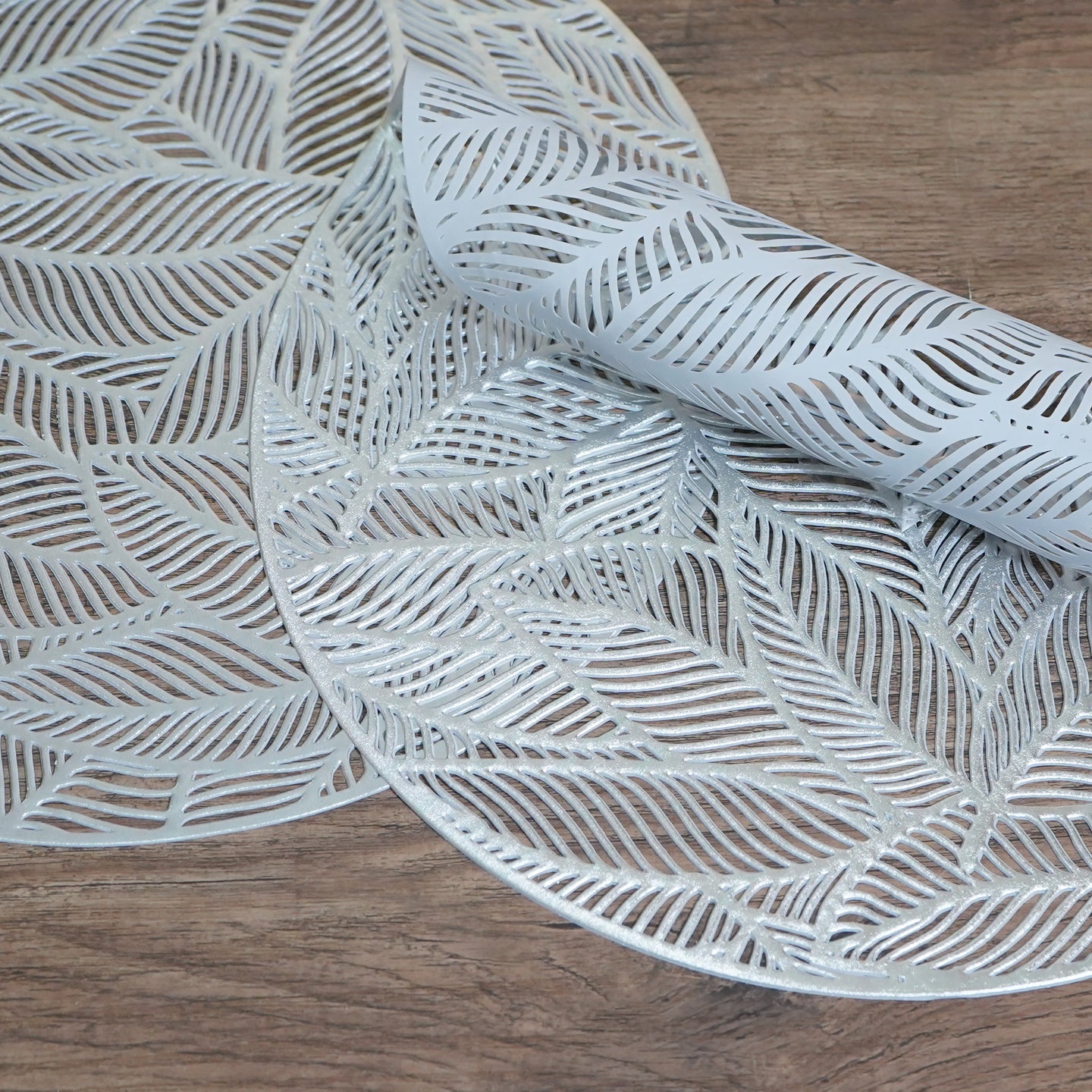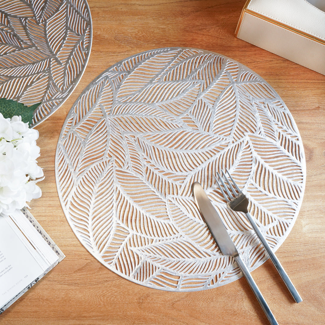 Set of 2 Round Leaf Patterned Placemats, Silver