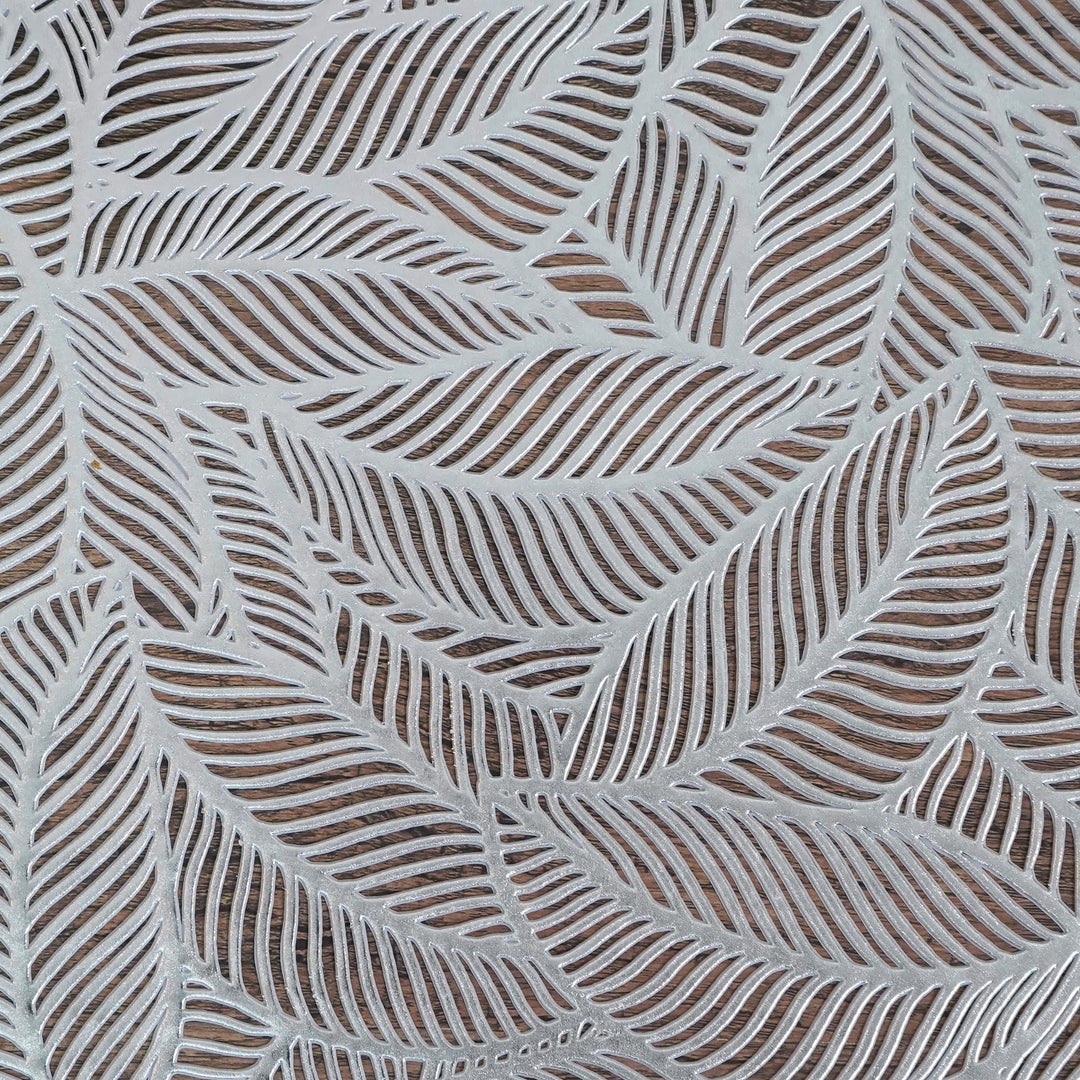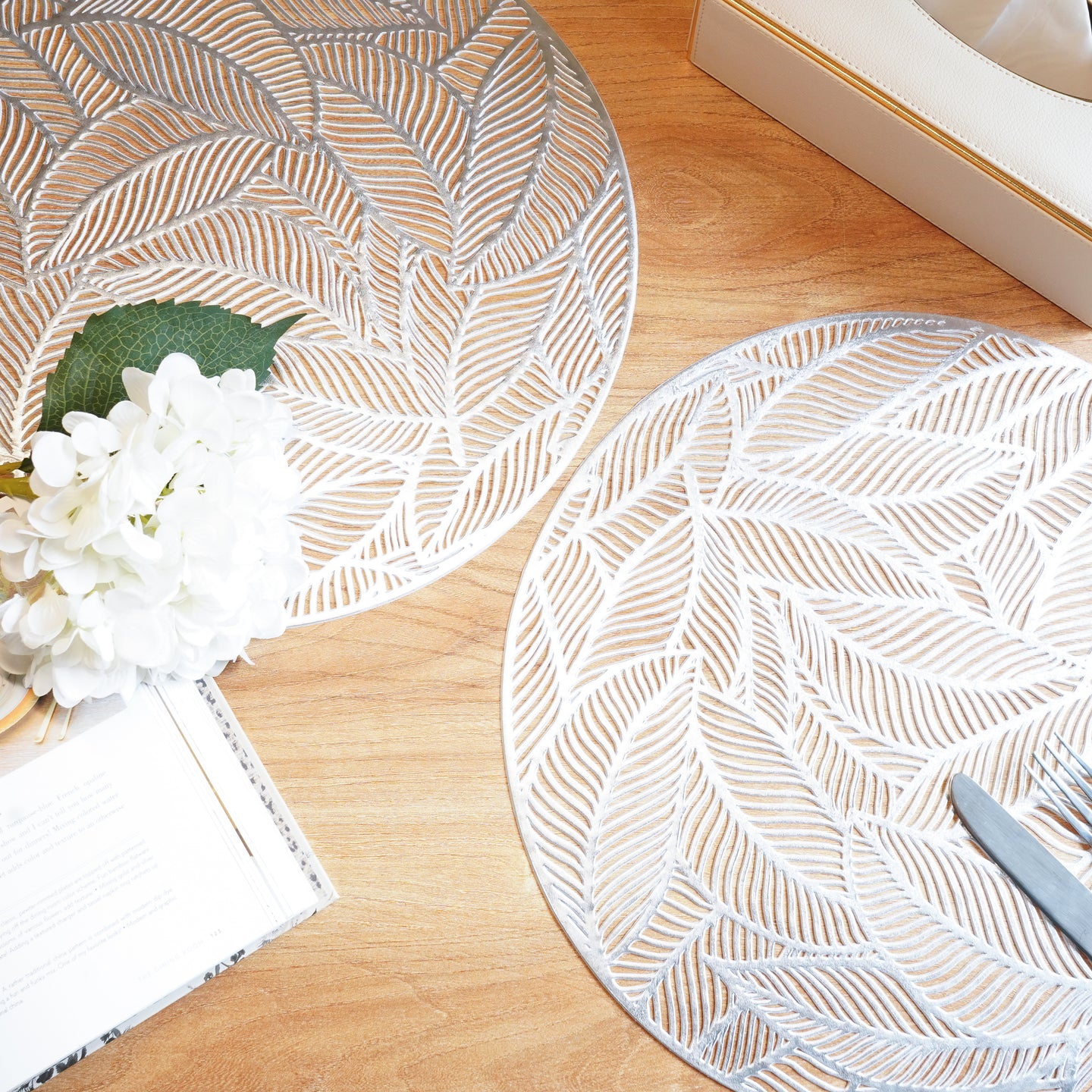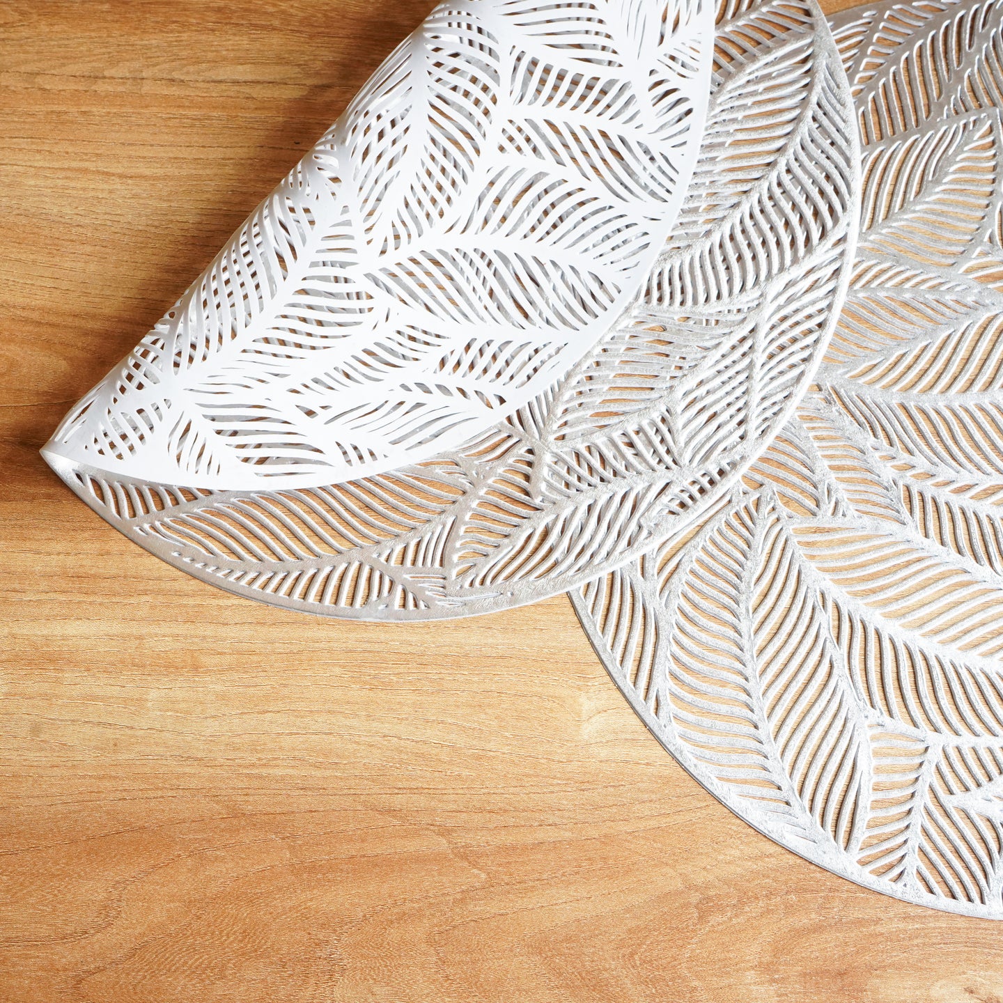 Set of 2 Round Leaf Patterned Placemats, Silver