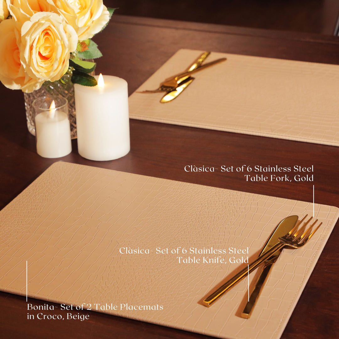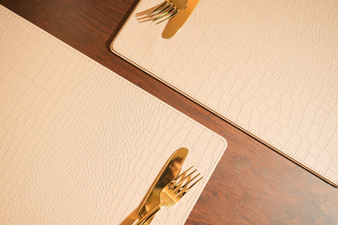 Set of 2 Table Placemats in Croco, Beige