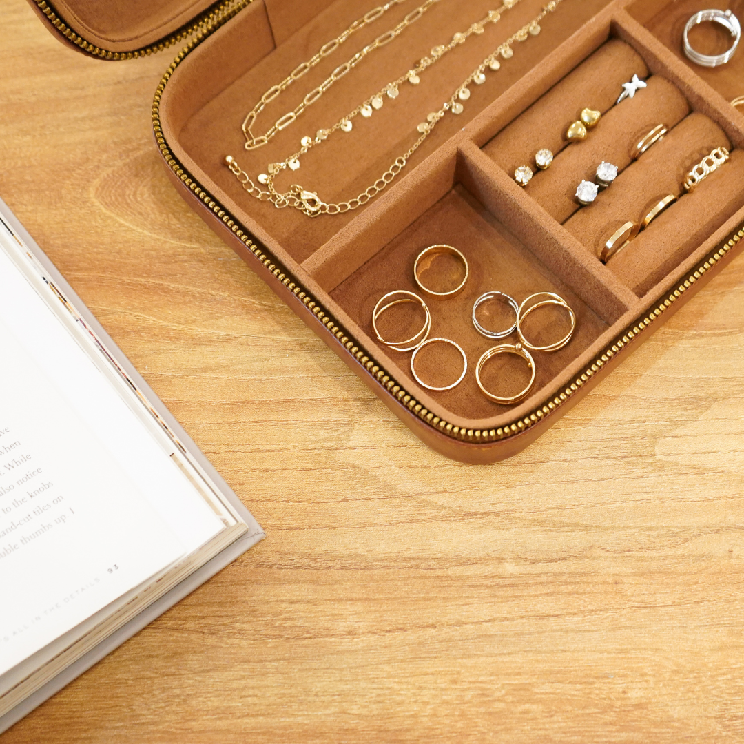 Embrace On-the-Go Elegance with our exquisite Jewellery Box, meticulously designed to accompany you in style, keeping your accessories secure and organized wherever you travel. The Zip Closure provides added security, ensuring your valuable items stay safe and protected during your journeys. Crafted with cruelty-free faux leather, we prioritize ethical choices, ensuring your fashion choices align with your values.