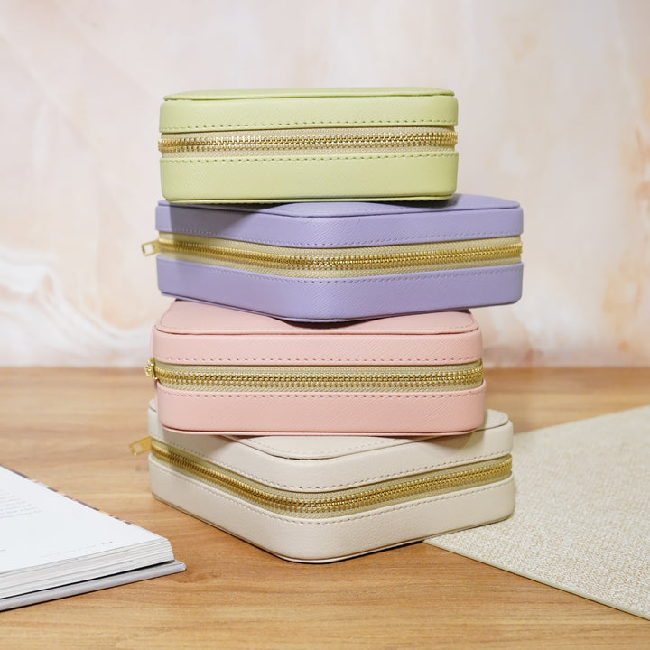 Perfect for the traveler who loves a bit of elegance on the go! This petite jewellery box is as stylish as it is practical. The light, faux leather case in a soft beige hue is compact yet spacious, making it the ideal companion for keeping your favorite pieces safe wherever you wander. With a secure zipper, it’s designed to prevent tangles and protect your accessories, so they’re ready to shine whenever you are.