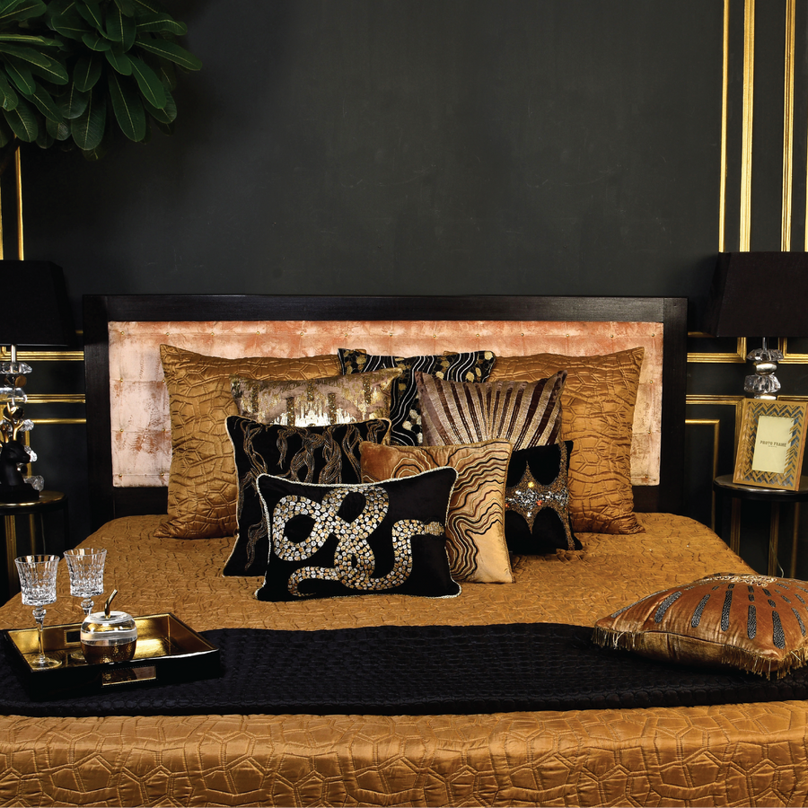 Get a serene sleeping experience with our 'La Mistica Collection' inspired by the Chinese mysticism patterns. The patterns are the creative play of traditional auspicious ideas in terms of Yin-yang and five-element thoughts. One of which binds nature and man. Endowed in mysticism are optimistic thoughts, cultural spirit, and a strong desire for your propitious life. This silk reversible Mystique bedspread in beige is a must-have for your bedrooms.