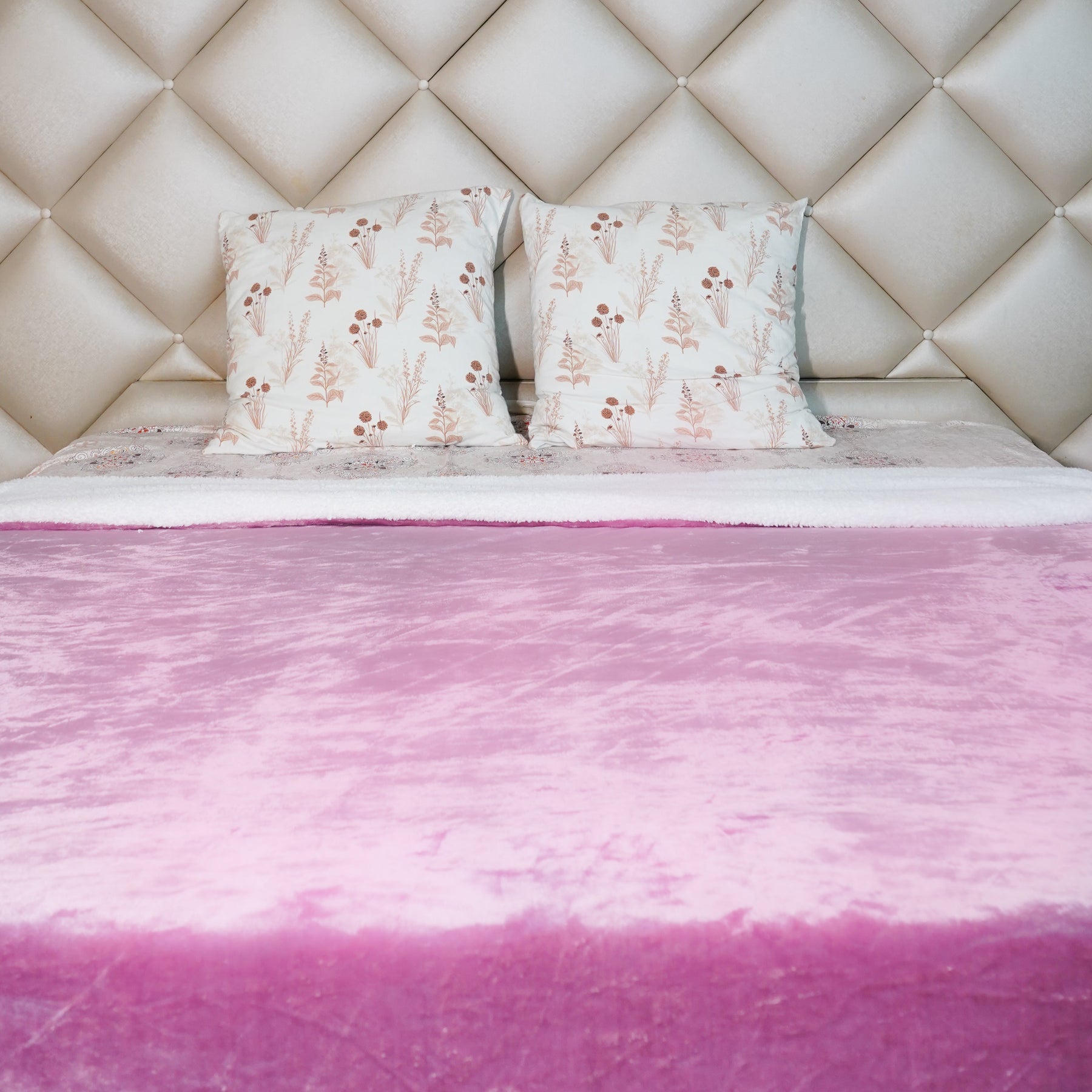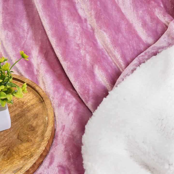 Pink Reversible Ultra-Soft Plush Sherpa Throw Blanket, Double Bed Size 90 x 100"